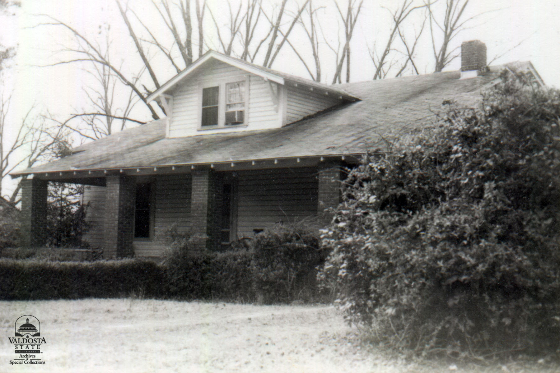 Georgia Architectural and Historic Properties Survey of Rural (Pidcock) [220] South west section of the county, Ga. December 1980. Fair condition. A one story rectangular with multi-gabled roof with shiplap siding. Exposed rafters and brackets. Gabled dormer, shed porch with square posts. Sash windows with 4/1 lights. Interior chimney. Brick piers. Date of Construction: c. 1930. A typical vernacular house common in the rural areas of the county.