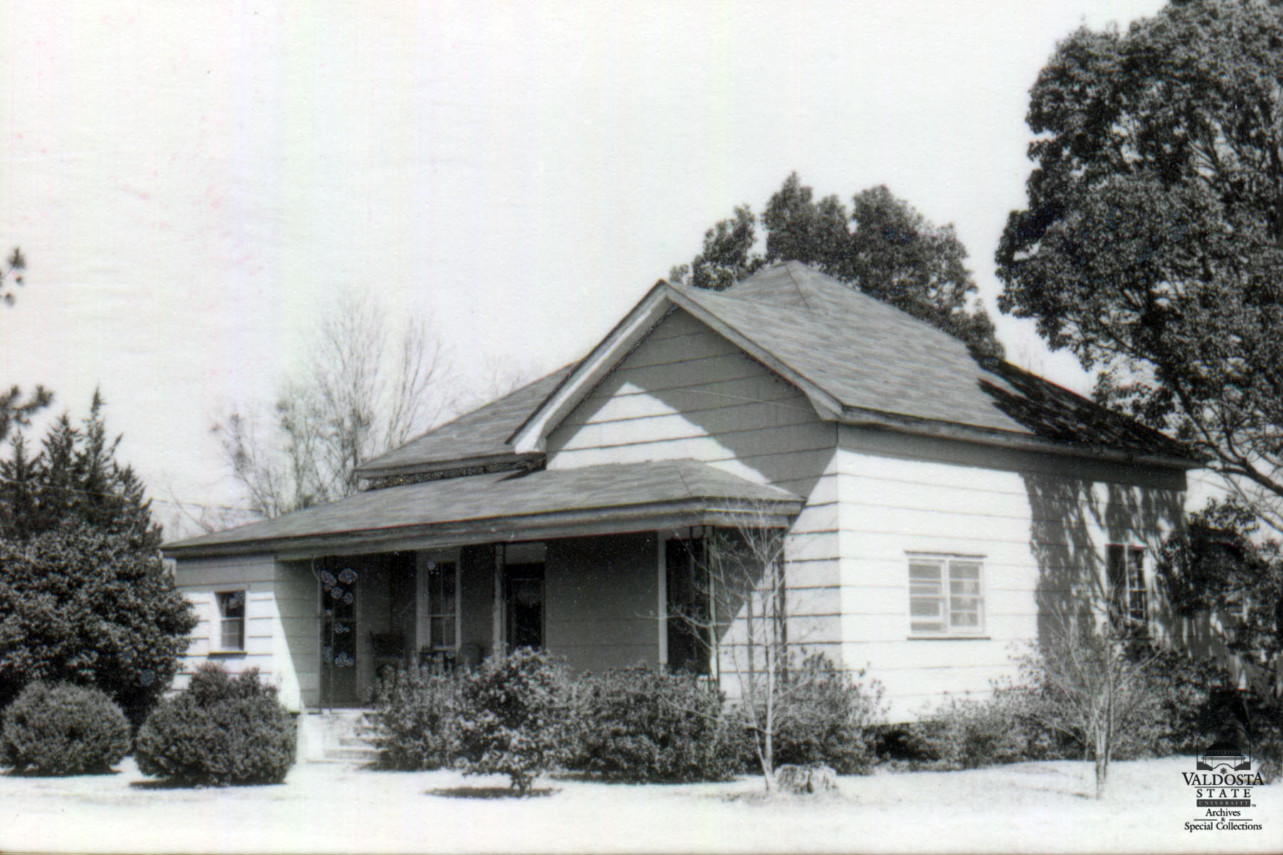 Georgia Architectural and Historic Properties Survey of Pavo [003] Adams St. Quitman, Ga. December 1980. A one story rectangular plan with gabled and hip roof. Hip porch. Modern windows.ccc Asbestos siding. Brick piers. Fair condition. Date of Construction: c. 1915. Not significant as part of a potential National Register historic district. Area of older structures not extensive enough.