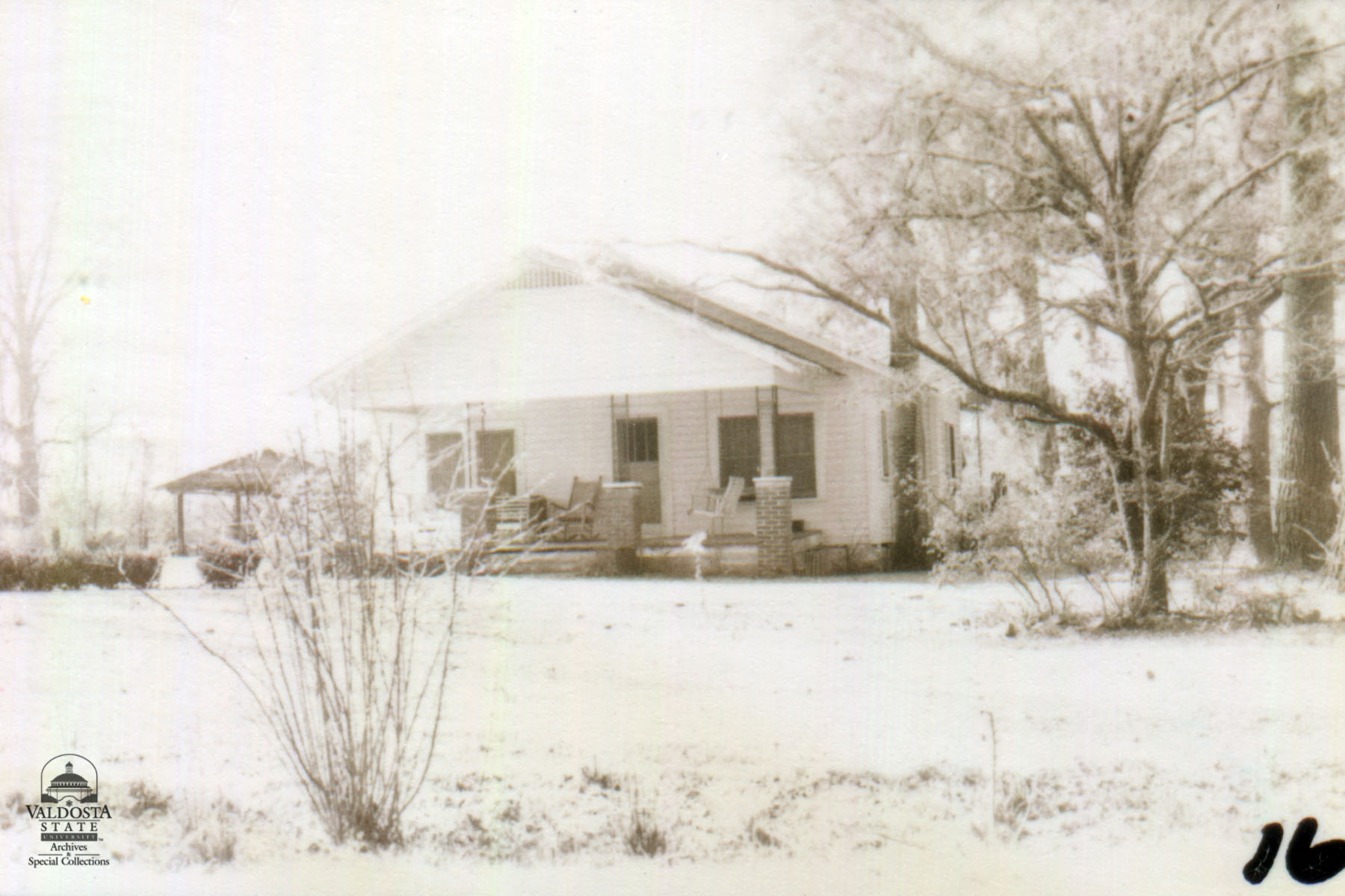 Georgia Architectural and Historic Properties Survey of Morven [016] Hitch St. Hahira West, Ga. December 1980. One story house of rectangular plan. Gabled roof and gabled porch. Shiplap siding. Double hung sash windows with 3/1 lights. Exterior chimney. Brick piers filled in. Fair condition. Date of Construction: c. 1910. Not significant as part of a potential National Register historic district. Area not extensive enough historically.