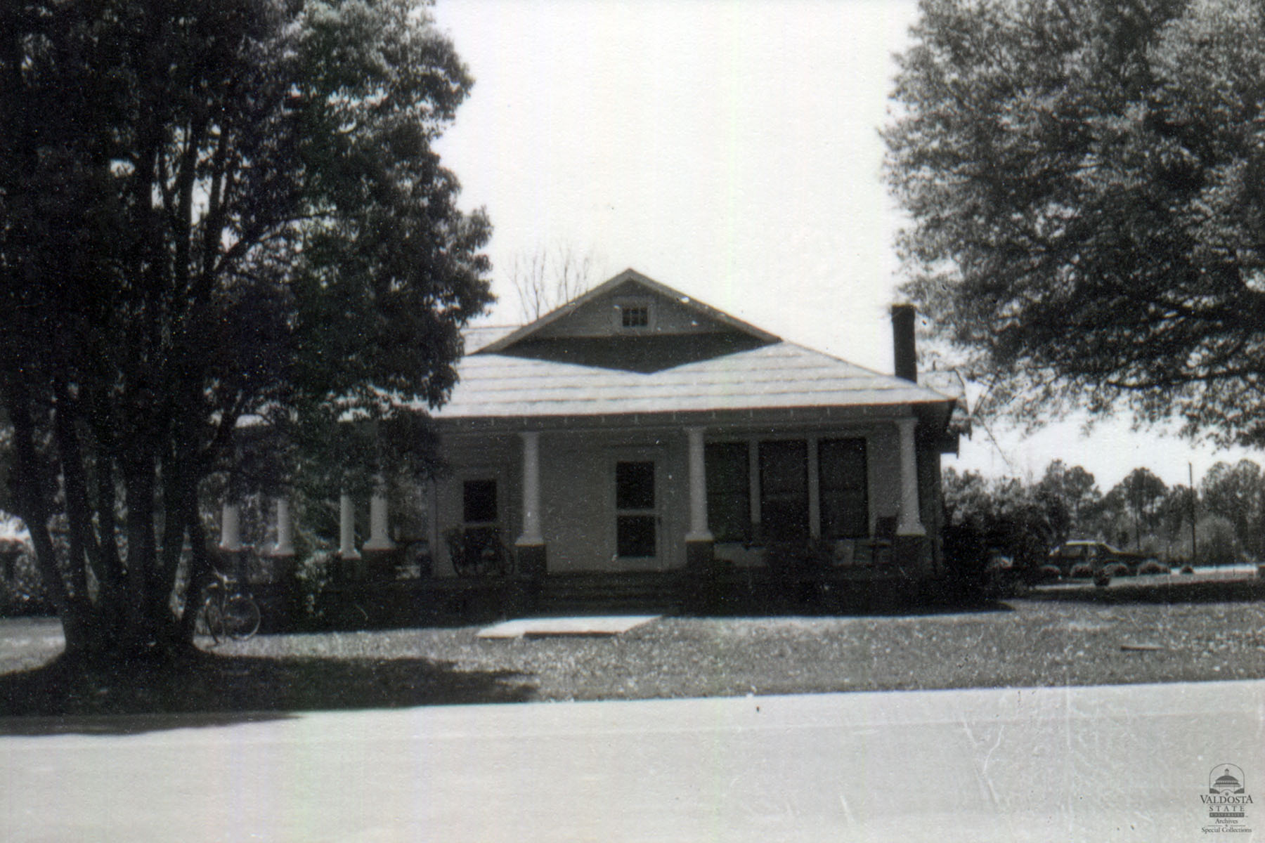 Georgia Architectural and Historic Properties Survey of West Railroad Ave. [19], Sycamore, Turner County, Ga., 1981. Bungalow house plan with hipped roof with gables and exposed rafters. Hipped porch supported by Tuscan columns on brick. Shiplap siding. Double sash windows with 4/1 lights. Brick piers. Fair condition. Date of Construction: c. 1918. Not significant as part of a potential National Register historic district. Area of older structures not extensive enough.