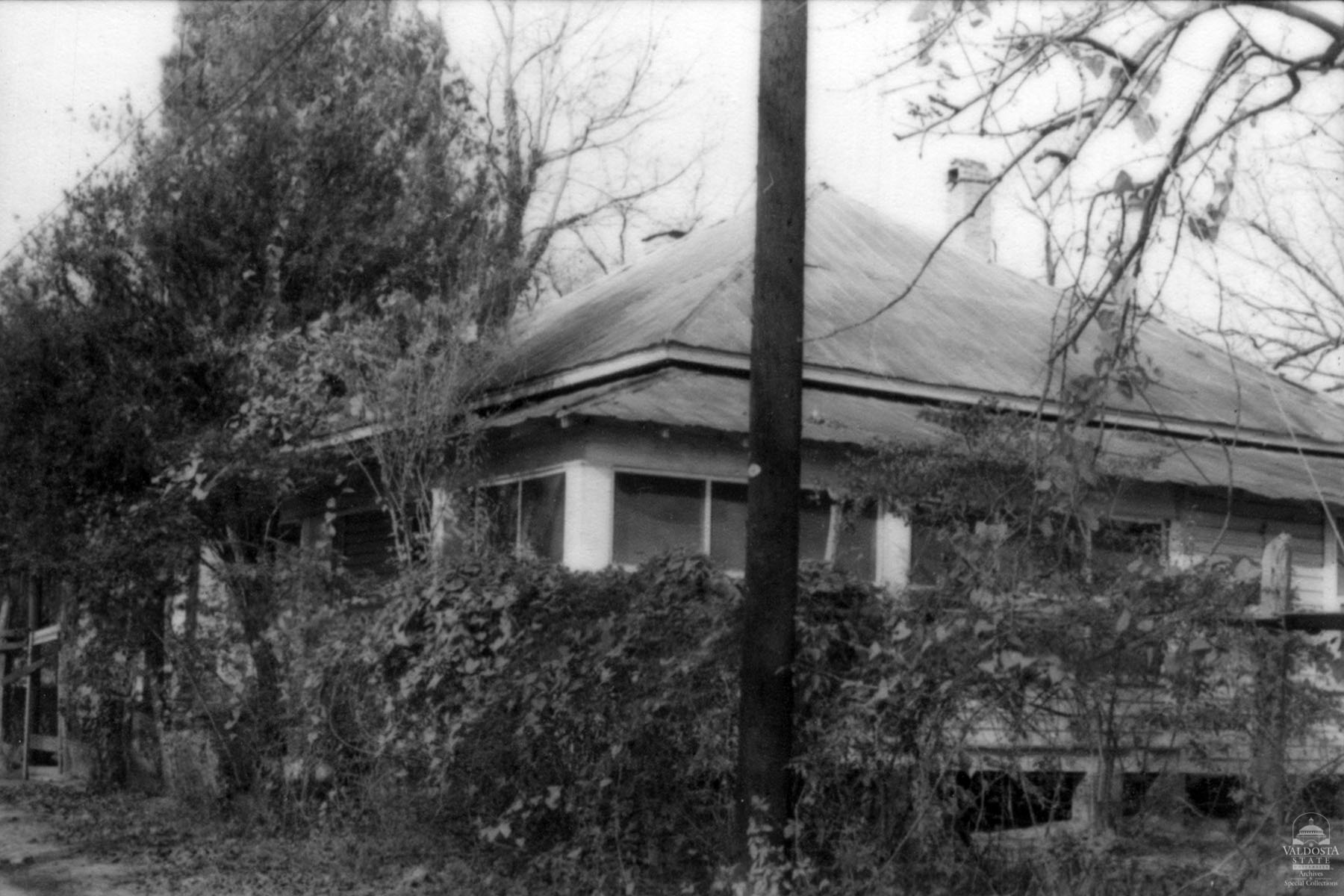 Georgia Architectural and Historic Properties Survey of 806 Gainey St., Valdosta, Ga., December 1980. One story house of rectangular plan, hipped tin roof; shed porch with square posts. Shiplap siding. Interior chimney. Set on brick piers. Fair condition. Double hung sash windows with 2/2 lights. Date of Construction: App. 1910-1920. Part of an area which possibly developed as housing for millworkers at the Valdosta Mill Company in the early 1900's. Not significant in terms of a N.R. district - too many structures have been torn down in the area.