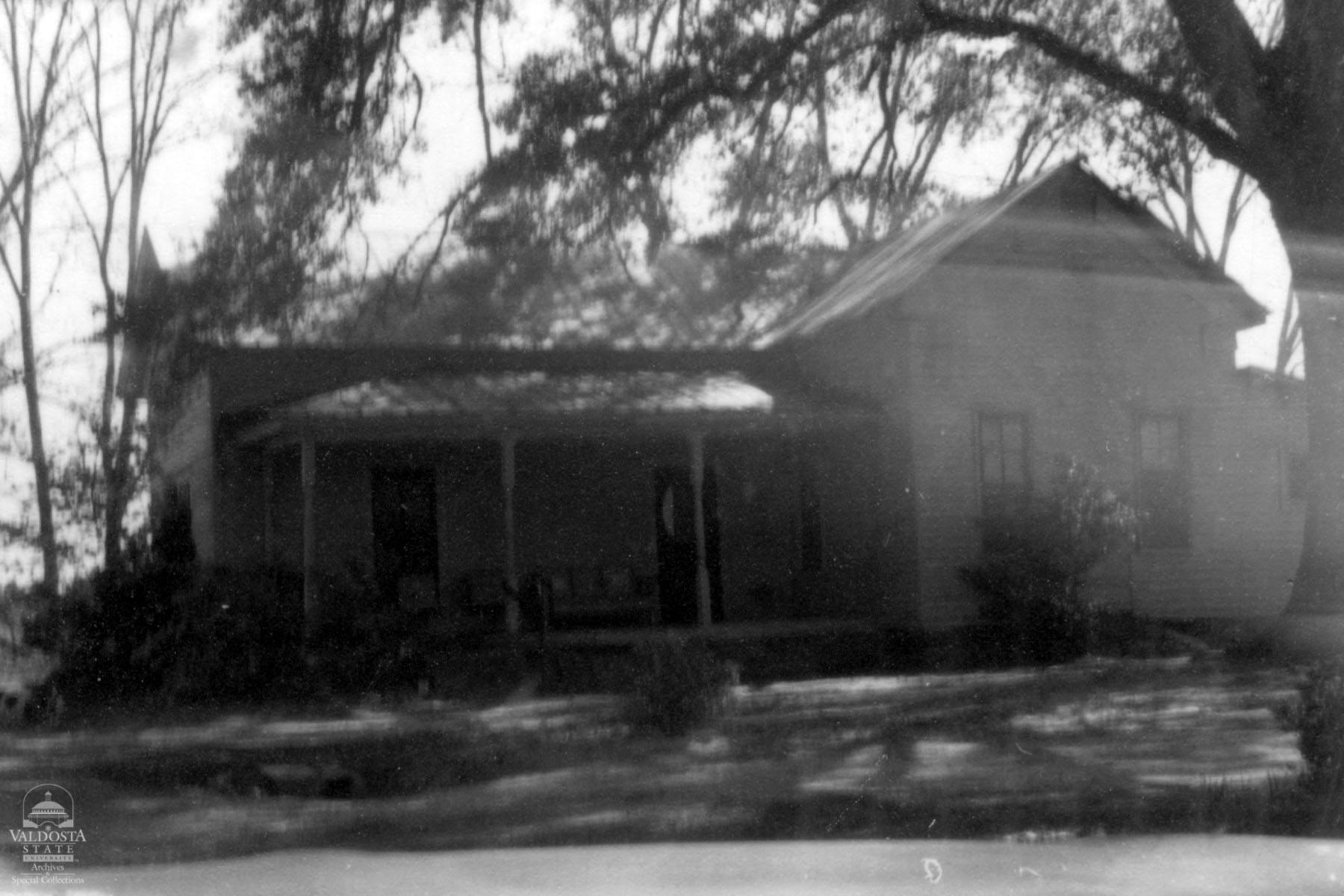 Georgia Architectural and Historic Properties Survey of "off" Dasher St., Sycamore, Turner County, Ga., 1981. Georgian plan house with multi-gabled tin roof. Hipped porch supported by turned spindle posts. Clapboard siding. Double sash windows with 4/4 and 2/2 lights. Brick piers. Original front door with oval beveled glass window. Poor condition. Date of Construction: c. 1910. Not significant as part of a potential National Register district. Area of older structures not extensive enough.