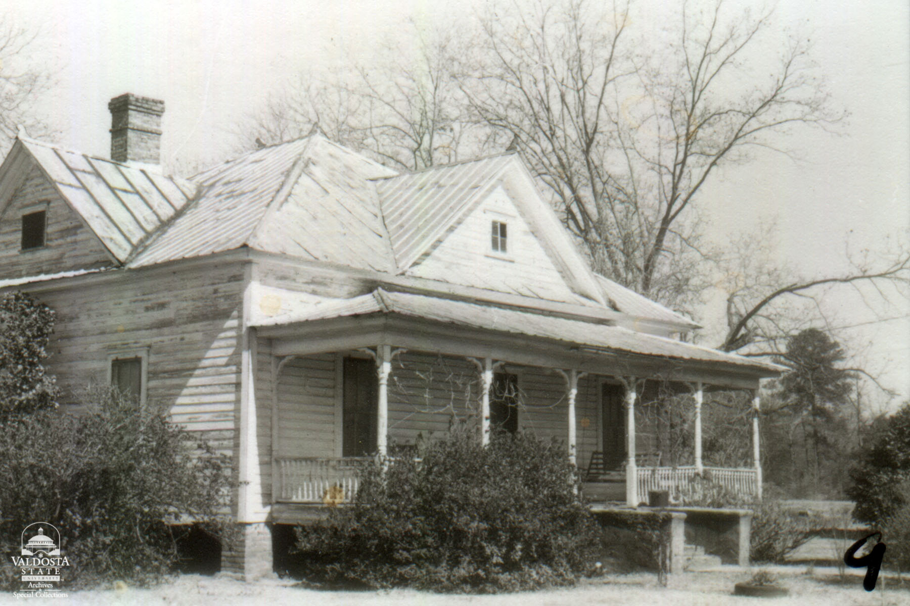 Georgia Architectural and Historic Properties Survey of Rural [101] Mid west section of the county, Quitman, Ga. December 1980. Fair condition. A one story rectangular plan with hipped and gabled roof. Clapboard siding and shingles. Hipped porch with turned spindle posts and gingerbread trim. Sash windows with 2/2 lights. Interior chimney. Brick piers. Date of Construction: c. 1905. A typical vernacular rural house common to this area.