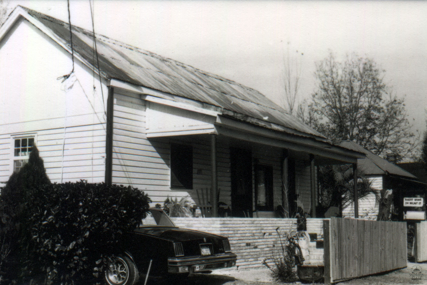 Georgia Architectural and Historic Properties Survey of 204 Walnut Street, Valdosta, Ga., December 1980. One story double pen house of rectangular plan. Gabled tin roof, shed porch with round posts. Shiplap siding. Set on brick piers. Double hung sash windows with 2/2 lights. Date of Construction: App. 1910. Significant as part of a potential N.R. district which would cover a 4 or 5 block area.