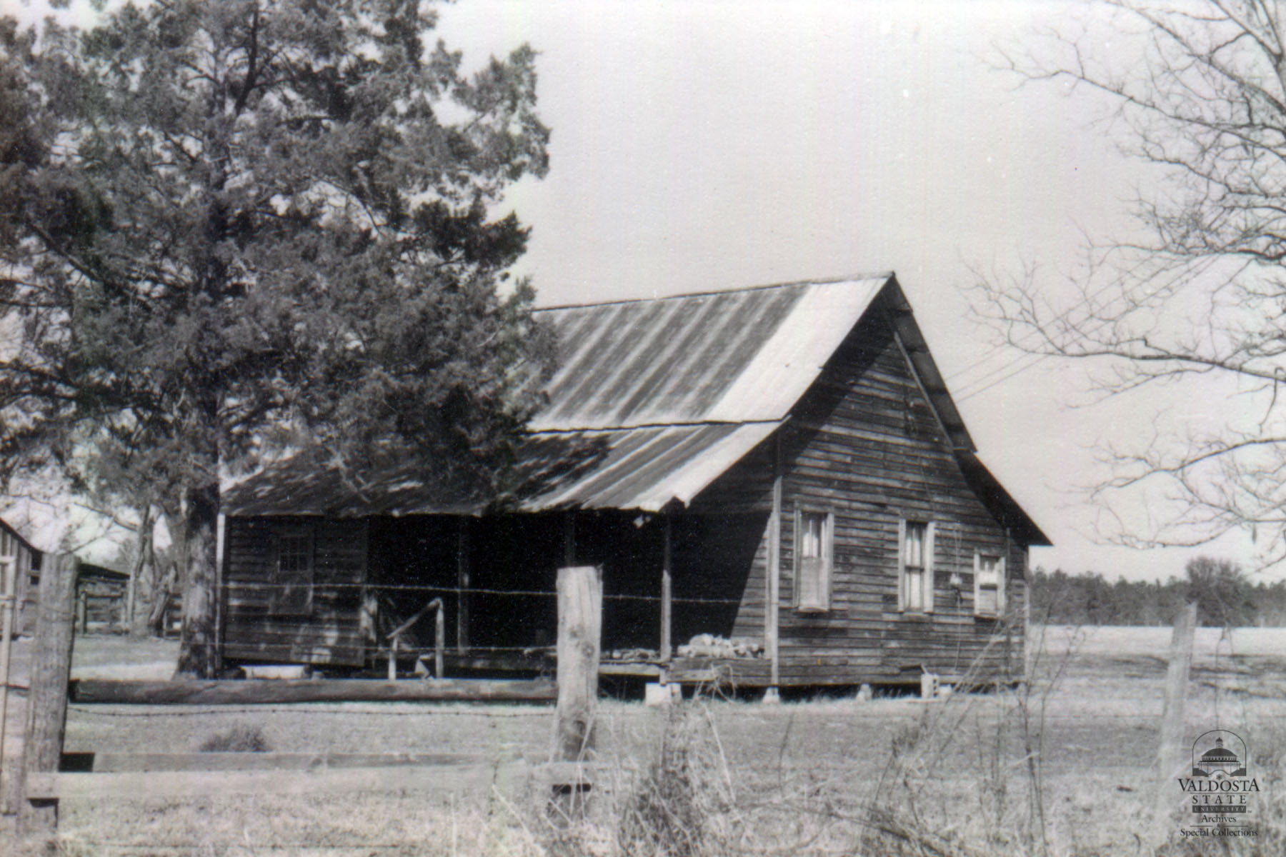 Georgia Architectural and Historic Properties Survey of Rural [280] About 4 miles south of Quitman, Valdosta, Ga. December 1980. Small rectangular plan saddlebag. Gabled, tin roof. Shed porch with square posts. Shiplap siding. Sash windows with 2/2 lights. Exterior chimney has been removed. Set on wood blocks. Date of Construction: c. 1880-1890. Looks as if this is a tenant house for farmworkers. Typical tenant housing of late 19th century.