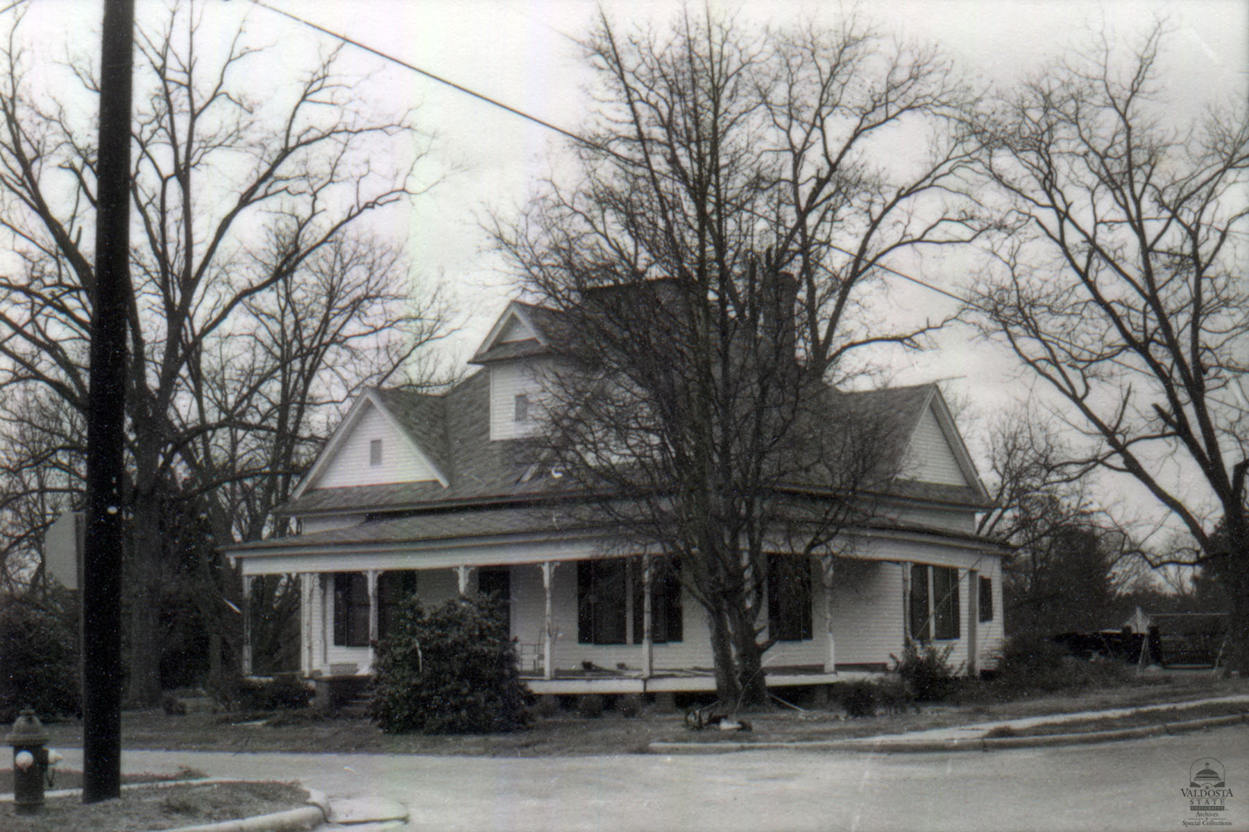 Georgia Architectural and Historic Properties Survey of Holly Street, Rebecca, Turner County, Ga., March 1981. 1 story rectangular aluminum clapboard sided Georgian plan with truncated hipped and gabled roof. Turned spindle posts support shed porch. Double hung sash windows with 1/1 lights and shutters. Interior chimney. Set on brick piers. Good condition. Date of Construction: c. 1900. Good example of Georgian plan style. Not significant as part of a potential National Register historic district. Area of older structures not extensive enough.