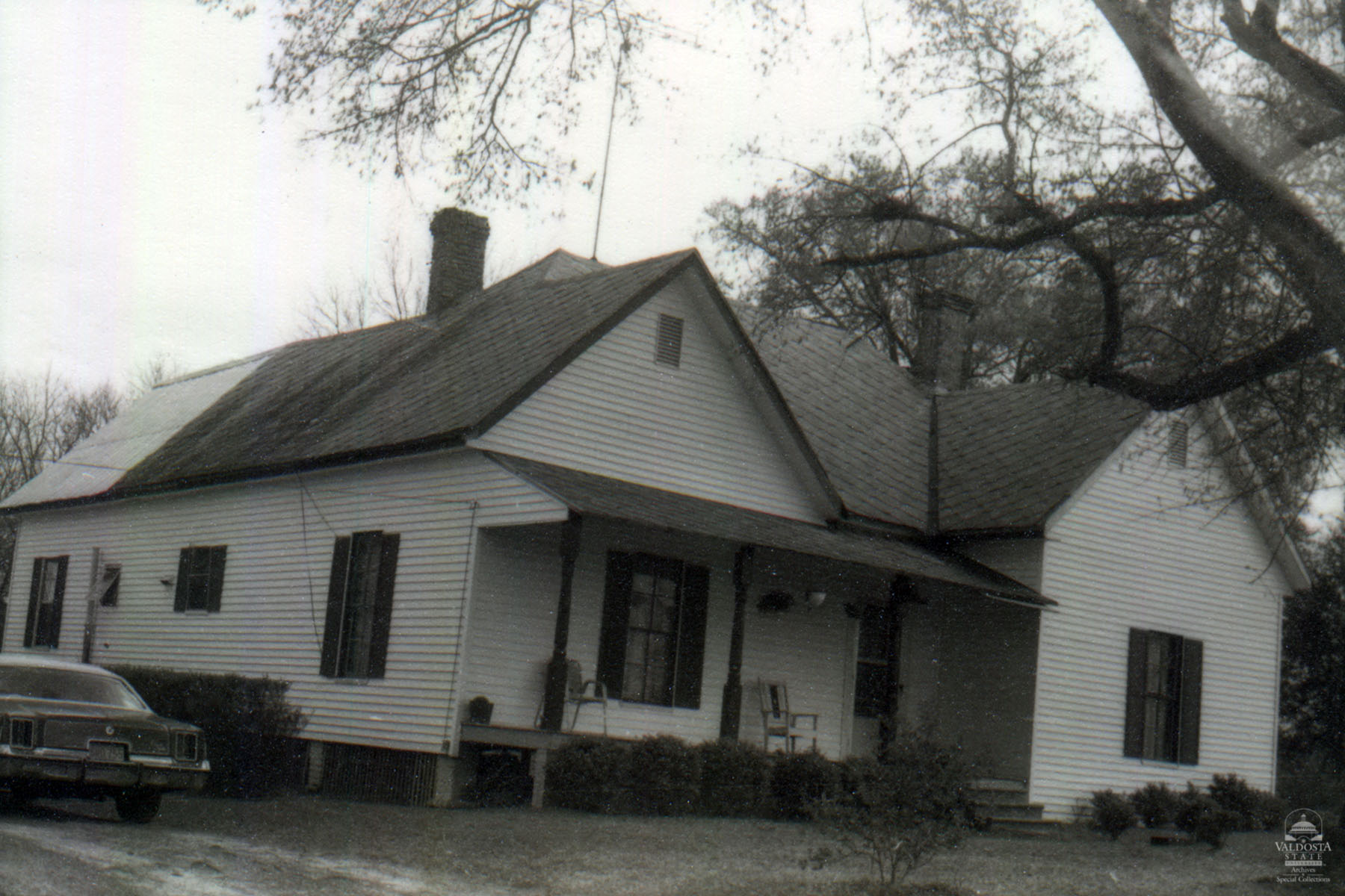 Georgia Architectural and Historic Properties Survey of Franklin St., Rebecca, Turner County, Ga., March 1981. 1 story rectangular aluminum clapboard house with hipped and gabled roof. Interior chimneys. Turned spindle posts support shed porch. Double hung sash windows with 4/4 lights. Fair condition. Date of Construction: c. 1910. Not significant as part of a potential National Register historic district. Area of older structures not extensive enough.