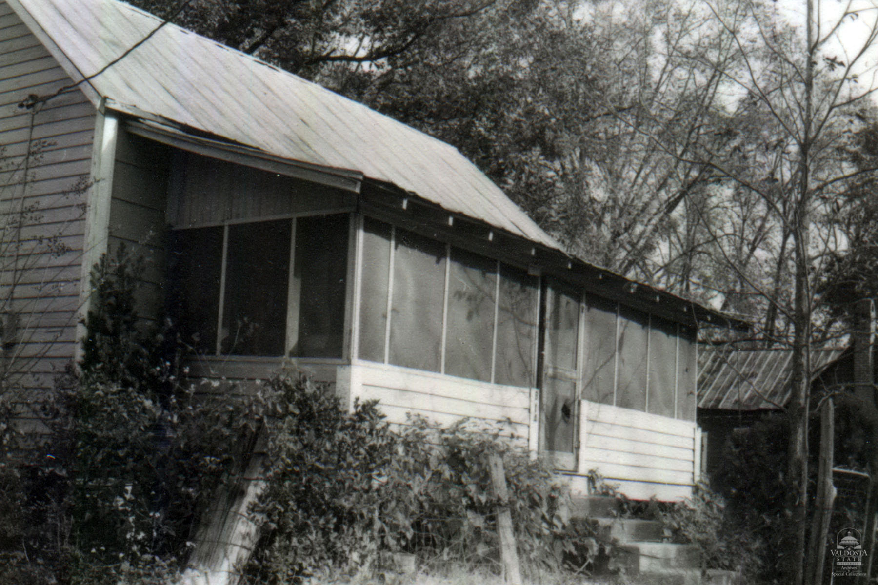 Georgia Architectural and Historic Properties Survey of 814 Nardo St., Valdosta, Ga., December 1980. 1 story shiplap double pen with gabled tin roof and exposed rafters. Set on brick piers. Double hung sash windows with 2/2 lights. Fair condition. Date of Construction: App. 1900-1910. Typical house in this area which could have possibly developed as housing for millworkers at Valdosta Mill Company. Not significant in terms of a N.R. district. Too many houses have been torn down and there are too many modern structures in the area.