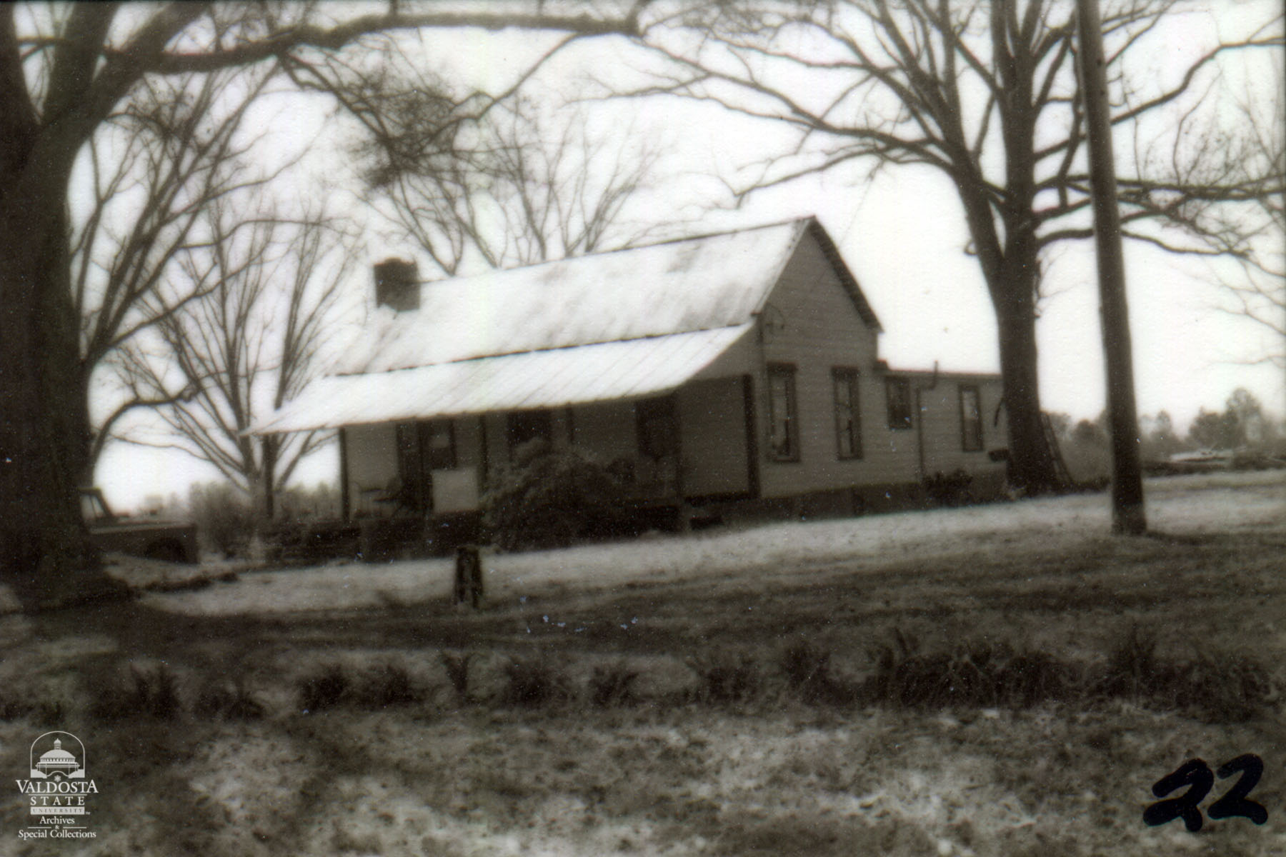 Georgia Architectural and Historic Properties Survey of Rural [141] Northern part of county, Quitman, Ga. December 1980. Rectangular plan house with gabled, tin roof. Shed porch with square posts. Shiplap siding. Sash windows with 2/2 lights. Exterior chimney. Set on brick piers. Fair condition. Date of Construction: c. 1910. Typical early 20th century farmhouse - very much like so many others which are found in the rural areas of the county.