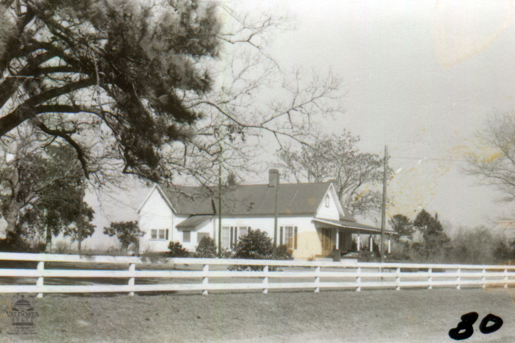 Georgia Architectural and Historic Properties Survey of Rural [121] Mid west section of the county, Quitman, Ga. December 1980. A one story L-shaped plan with gabled tin roof with shiplap siding. Shed porch with square posts. Sash windows with 6/6 lights, interior chimney, brick piers. White picket fence out front. Good condition. Date of Construction: c. 1910. A typical rural farmhouse common to the rural areas.