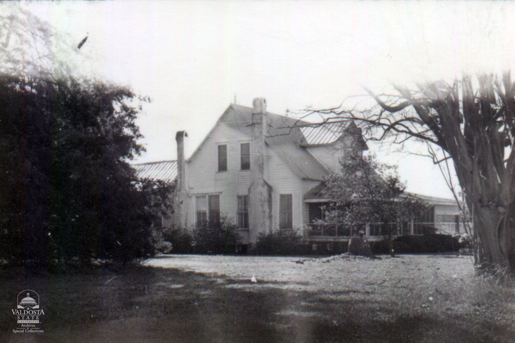 Georgia Architectural and Historic Properties Survey of Rural [006] Southeast Brooks Co., Ga. December 1980. 2 story house with gabled tin roof. Hipped, screened porch. Gabled dormer. Shiplap siding. Double hung sash windows with 2/2 lights. Exterior chimney. Windmill. Various farm shed outbuildings. Set on brick piers. Fair condition. Date of Construction: c. 1915. Typical rural farmhouse of the Brooks Co. area.