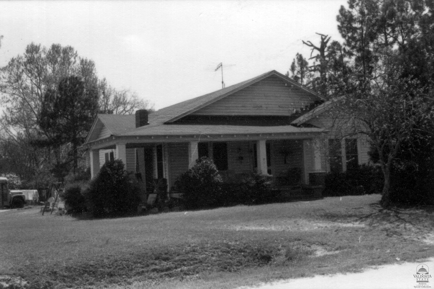 Georgia Architectural and Historic Properties Survey of Collins St. [2], Sycamore, Turner County, Ga., 1981. Bungalow style house with multi-gable roof. Hipped porch supported by square posts on brick. Shiplap siding. Double sash windows with 3/1 lights. Exterior chimney. Brick piers. Fair condition. Date of Construction: c. 1918. Not significant as part of a potential National Register historic district. Area of older structures not extensive enough.