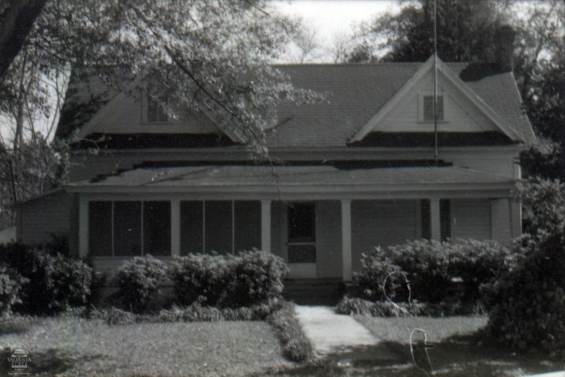 Georgia Architectural and Historic Properties Survey of Dasher St. [2], Sycamore, Turner County, Ga., 1981. Georgian plan house with gabled roof with pedimented gables. Hipped porch supported by square posts, screened in on left of door. Rear porch supported by turned spindle posts. Shiplap siding. Double sash windows with 2/2 lights. Brick piers. Good condition. Date of Construction: c. 1910. Not significant as part of a potential National Register historic district. Area of older structures not extensive enough.