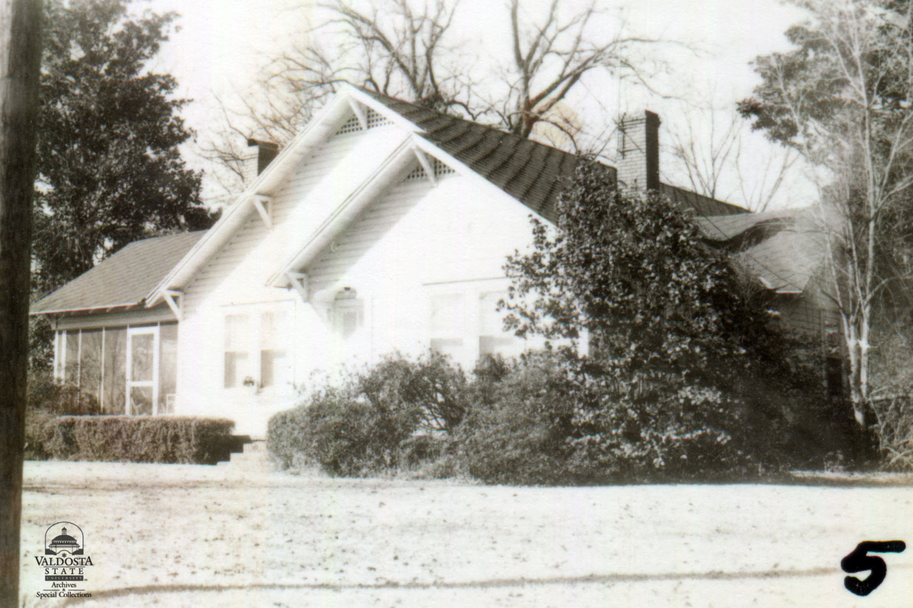 Georgia Architectural and Historic Properties Survey of Morven [05] First St., Quitman, Ga. December 1980. One story house of rectangular plan. Multi-gabled roof. Gabled porch at left. Brackets. Shiplap siding. Double hung sash windows with 4/1 lights. Interior chimney. Brick piers. Good condition. Date of Construction: c. 1925. Not significant as part of a potential National Register historic district, area not extensive enough historically.
