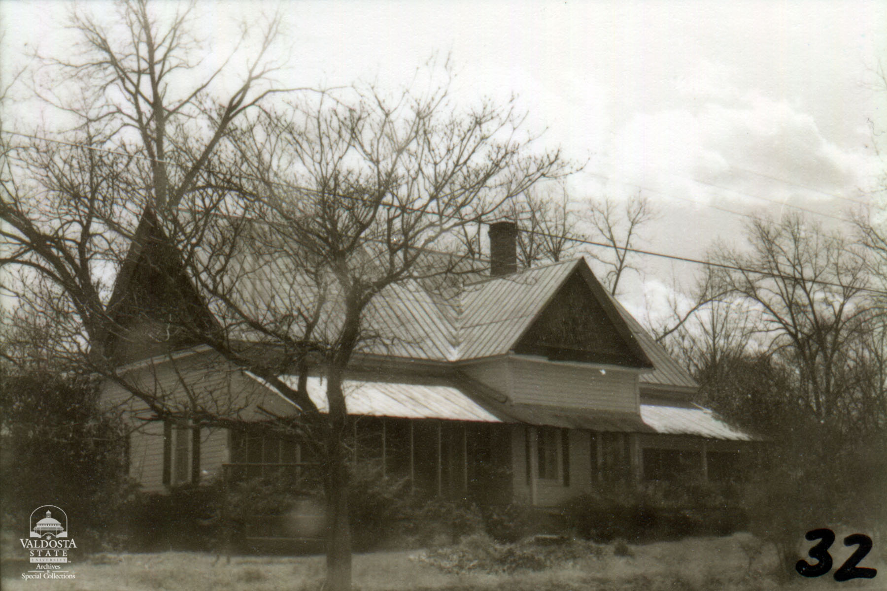 Georgia Architectural and Historic Properties Survey of Barwick [026] Old Coffee Rd. #26, Quitman, Ga. December 1980. L-shaped house with gabled tin roof. Shed porch with turned spindle posts. Shingles in gables. Shuttered sash windows with 2/2 lights. Set on brick piers. Interior chimney. Fair condition. Date of Construction: c. 1920. Significant as part of a potential National Register historic district, of 1900's and 1920's houses in the southeast portion of Barwick. See map for reference.