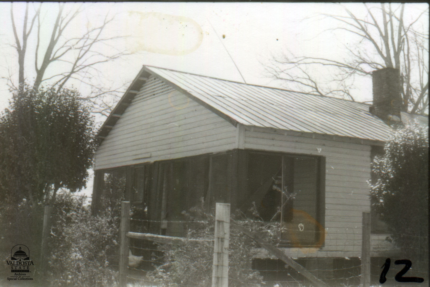 Georgia Architectural and Historic Properties Survey of Rural [104] Southwest section of county, Quitman, Ga. December 1980. 1 story rectangular shiplap sided house with gabled tin roof. Screened full width porch. Double hung sash windows with 2/2 lights. Interior chimney. Set on brick piers. Date of Construction: c. 1910. Typical rural house common to this area.
