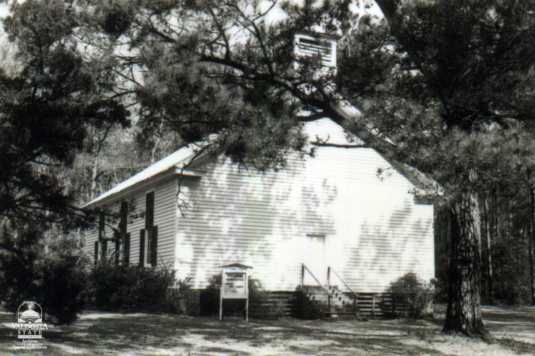 Georgia Architectural and Historic Properties Survey of Rural [226] South western section of the county, Grooverville, Ga. December 1980. Grooverville Methodist. A one story rectangular plan with gabled tin roof and clapboard siding. Sash windows with 9/9 lights and shutters. Brick piers. Square bell towers without spires. Good condition. Date of Construction: c. 1856. According to the History of Brooks County, Ga., this is the oldest church edifice in the county; this makes Grooverville Methodist very significant.