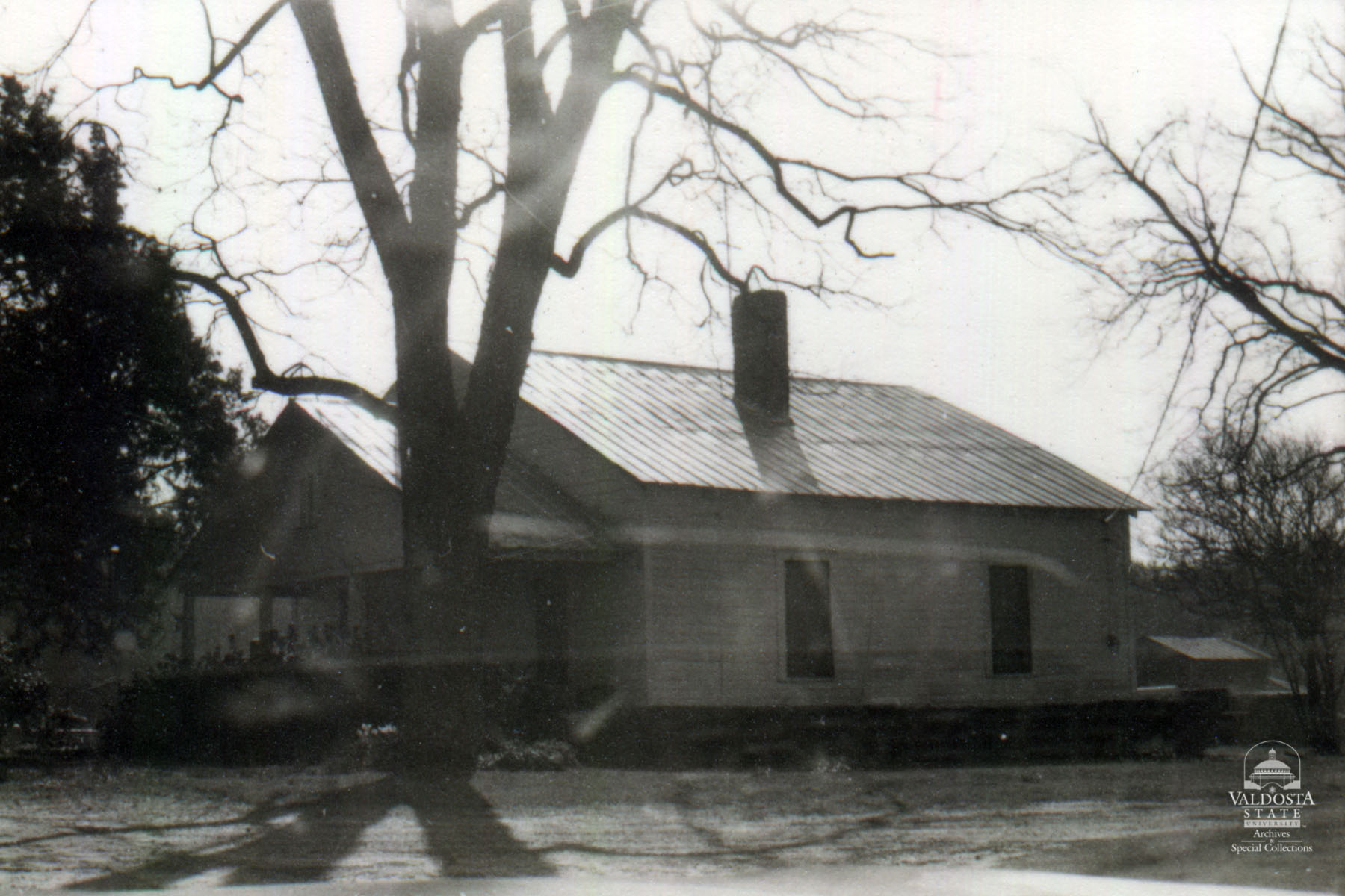 Georgia Architectural and Historic Properties Survey of Rural [144] Mid western section of the county, Valdosta, Ga. December 1980. A one story rectangular plan with gabled roof and shiplap. Gabled porch with square posts. Sash windows with 2/2 lights, exposed rafters. Brick piers. Date of Construction: c. 1910. A typical vernacular house common to Brooks County rural areas.