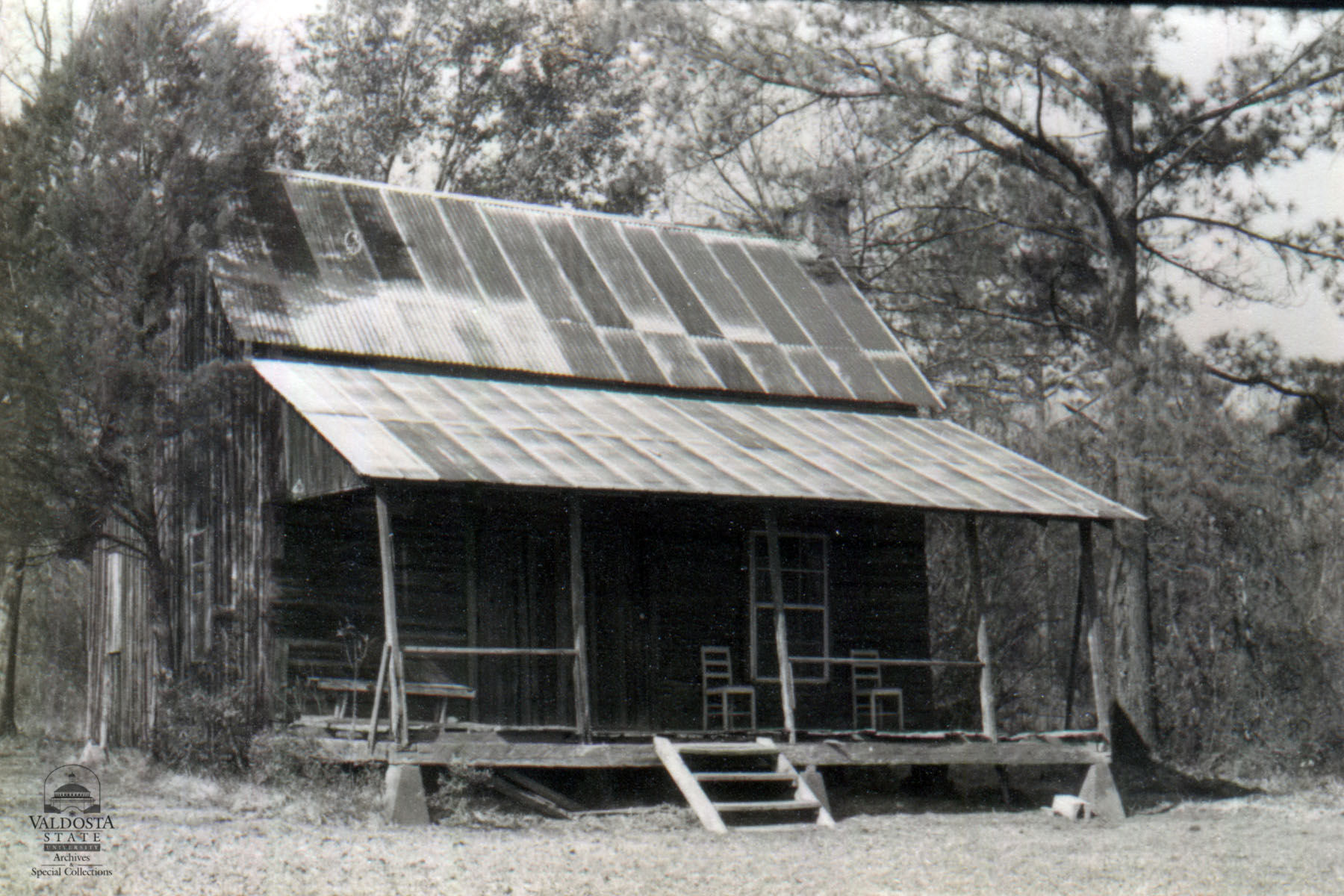 Georgia Architectural and Historic Properties Survey of Rural [263] Southeast corner of county, Valdosta, Ga. December 1980.Rectangular plan, single pen house. Gabled, tin roof. Shed porch with square posts. Modern windows. Horizontal and board and batten siding. Exterior chimney. Set on hexagonal blocks. Poor condition. Date of Construction: c. 1890. Typical tenant house found on a large plantation. This house and land are a part of River Bend Plantation, formed in the late 1800's. Covers thousands of acres in the southeast portion of the county.