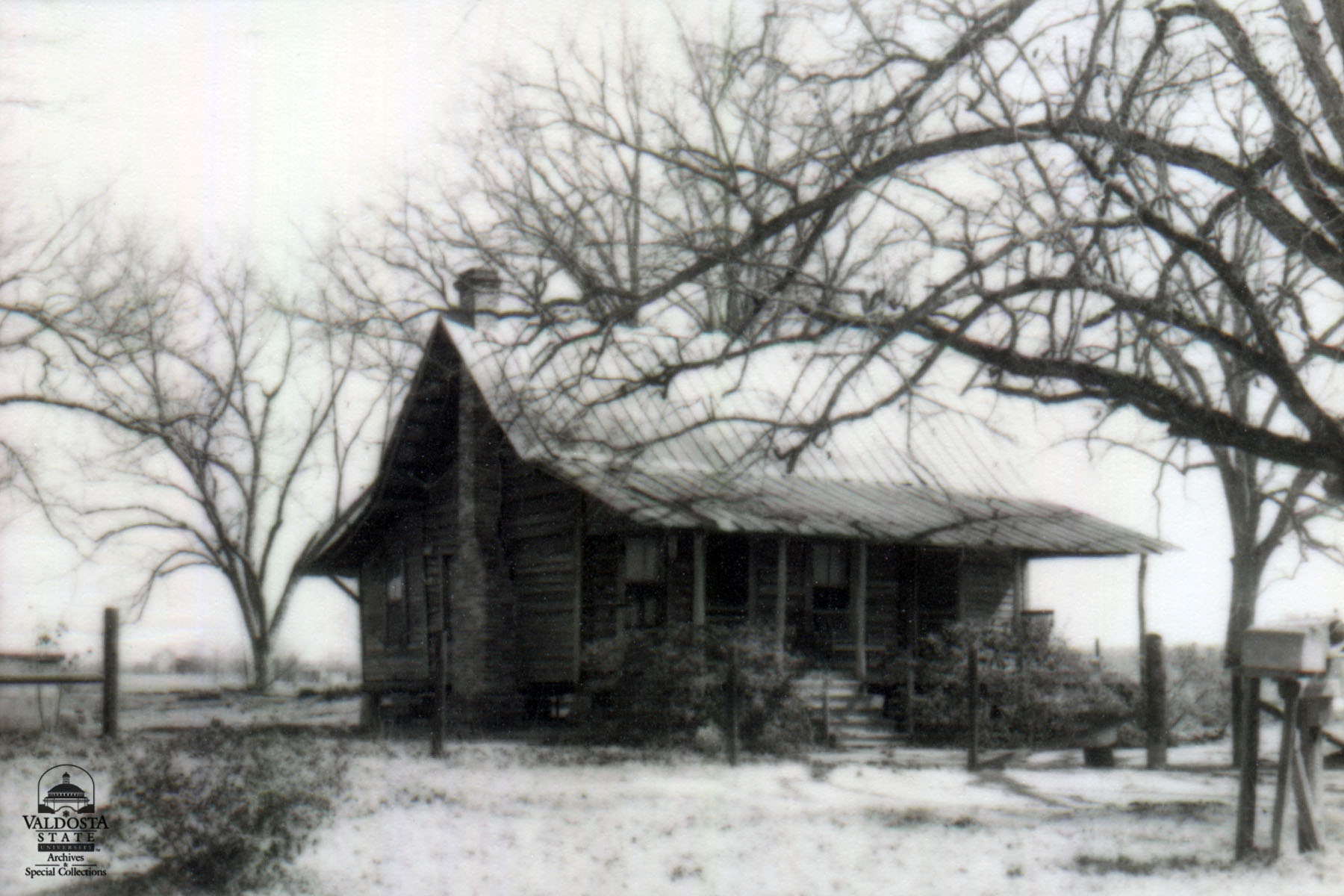 Georgia Architectural and Historic Properties Survey of Rural [142] Northern part of county, Quitman, Ga. December 1980. Rectangular plan house with gabled, tin roof. Shed porch with round posts. Clapboard and shiplap siding. Sash windows with 2/2 lights. Exterior chimney. Set on wooden piers - round and hexagonal ones. Fair condition. Date of Construction: c. 1900. This house is very much like many of the others found in the farming areas of Brooks County.