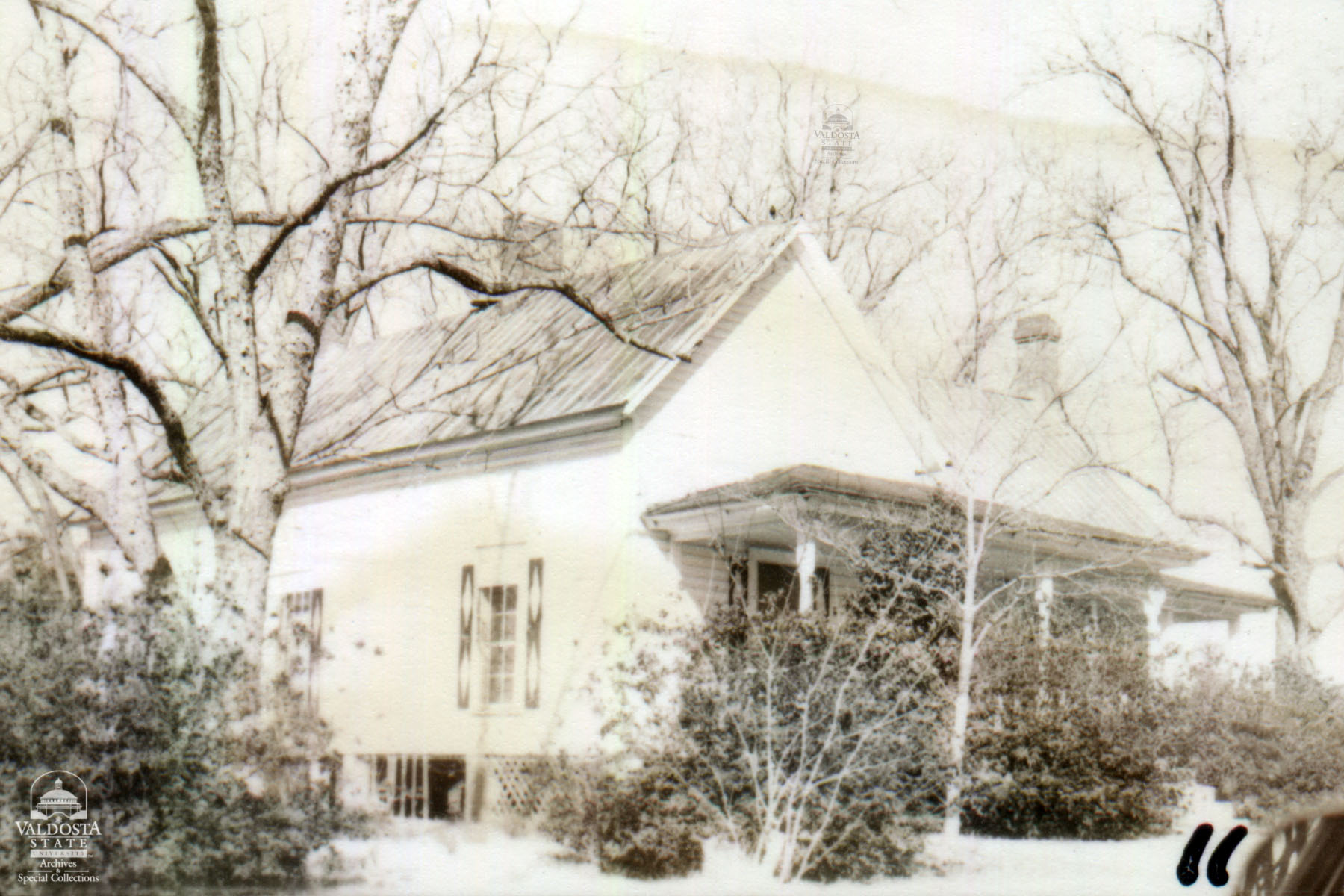 Georgia Architectural and Historic Properties Survey of Morven [011] Railroad St. Quitman, Ga. December 1980. One story house of rectangular plan with gabled roof. Turned spindle posts at hipped porch. Shiplap siding. Double hung sash windows with 4/1 and 2/2 lights. Exterior and interior chimney. Banister. Set on brick piers. Good condition. Date of Construction: c. unknown. Not significant as part of a potential National Register historic district. Area not extensive enough historically.