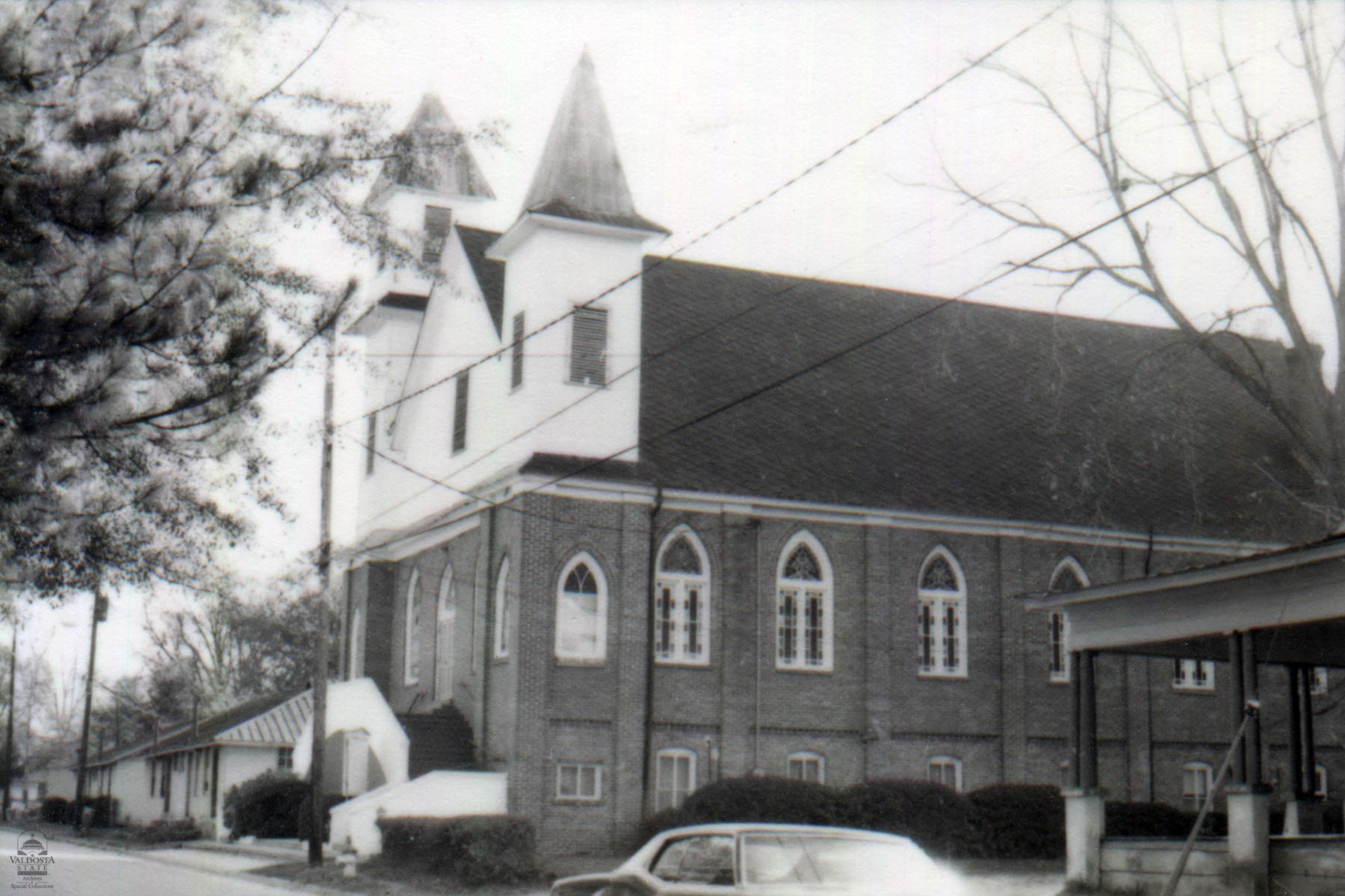 Georgia Architectural and Historic Properties Survey of Macedonia Baptist Church, 715 Jackson St., Valdosta, Ga. December 1980. Large two story church building of rectangular plan, gabled roof; two square bell towers; one on left taller. (Pointed tin roofs). Main entrance on second floor. Windows are pointed arches with stained glass. Some casement windows. Brick. Good condition. Date of Construction: 1913. One of the oldest organized churches in Valdosta. Present building constructed in 1913. Church organized in 1865 as the Macedonia First African Baptist Church. Reverend Charles Anderson was first pastor.