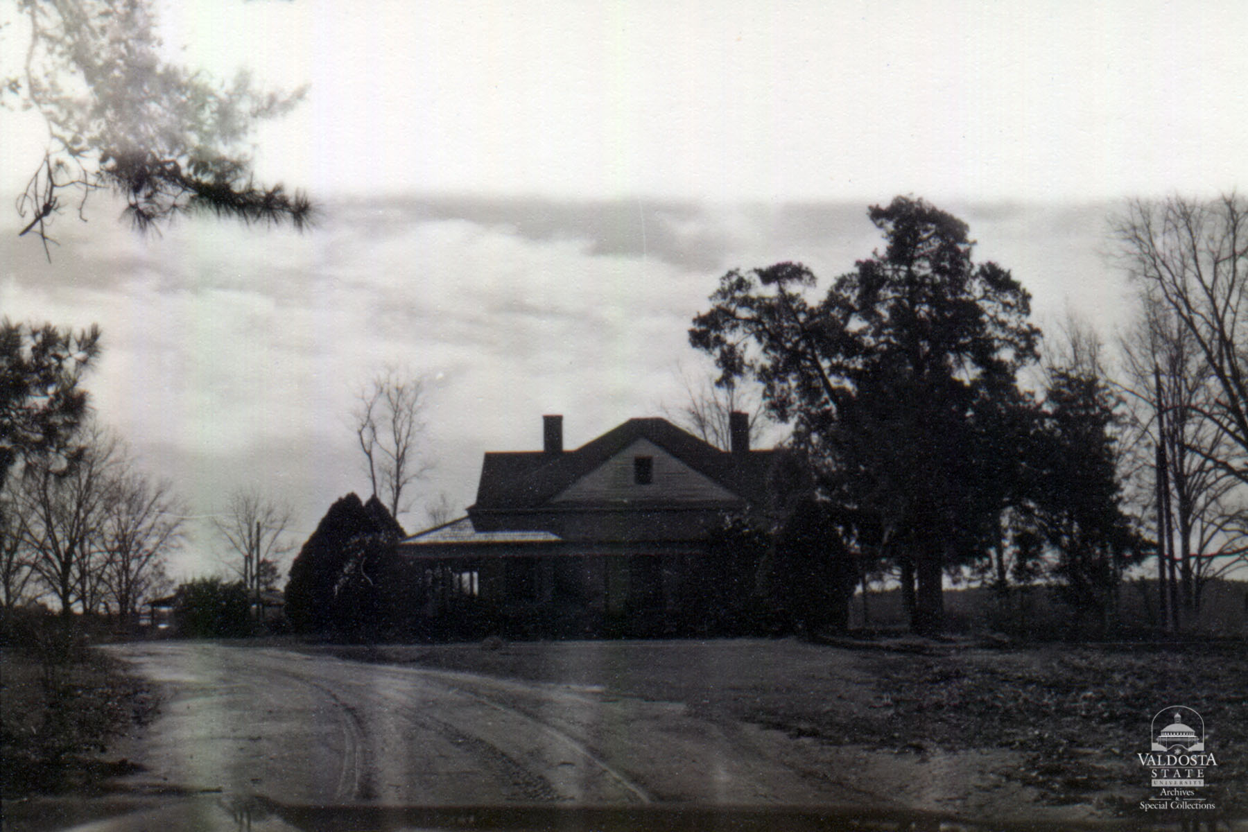 Georgia Architectural and Historic Properties Survey of Rural [003] Middle east section of county, Valdosta, Ga. December 1980. 1 story rectangular clapboard house with hipped and gabled roof with central gable. Turned spindle posts supporting shed porch. Double hung sash windows with 2/2 lights. Interior chimney. Set on brick piers. Poor condition. Date of Construction: c. 1905. Possibly once had unattached kitchen. Typical rural house common to this area.