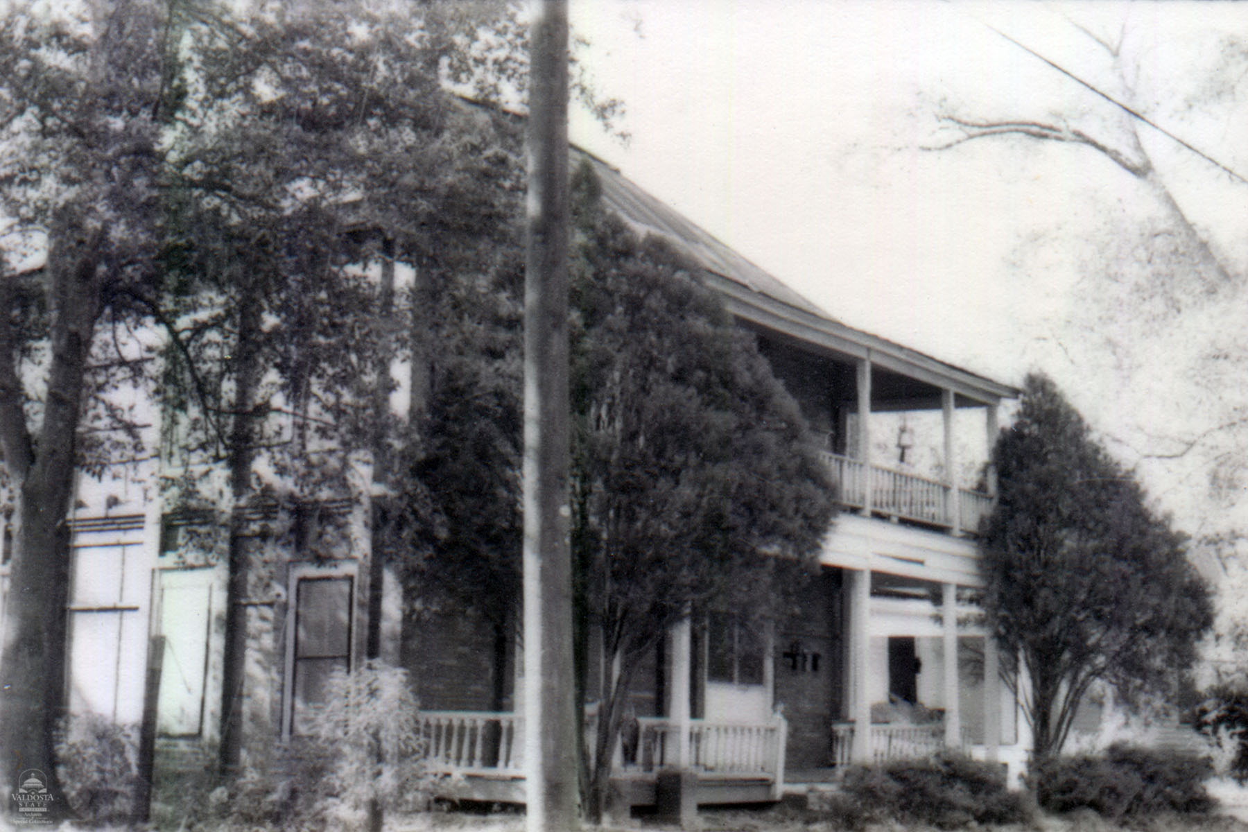 Georgia Architectural and Historic Properties Survey of 120 Second Avenue, Valdosta, Ga., October 1980. Two story brick house of rectangular plan. Truncated tin hipped roof. Full width monumental portico with square posts. Brick coursing piers. Double hung sash windows with 2/2 lights. Poor condition. Date of Construction: Prior to 1922. Most houses in this neighborhood are very functional, this house is unusual being 2 story and brick. Not significant in terms of a district because there are too many modern intrusions around.