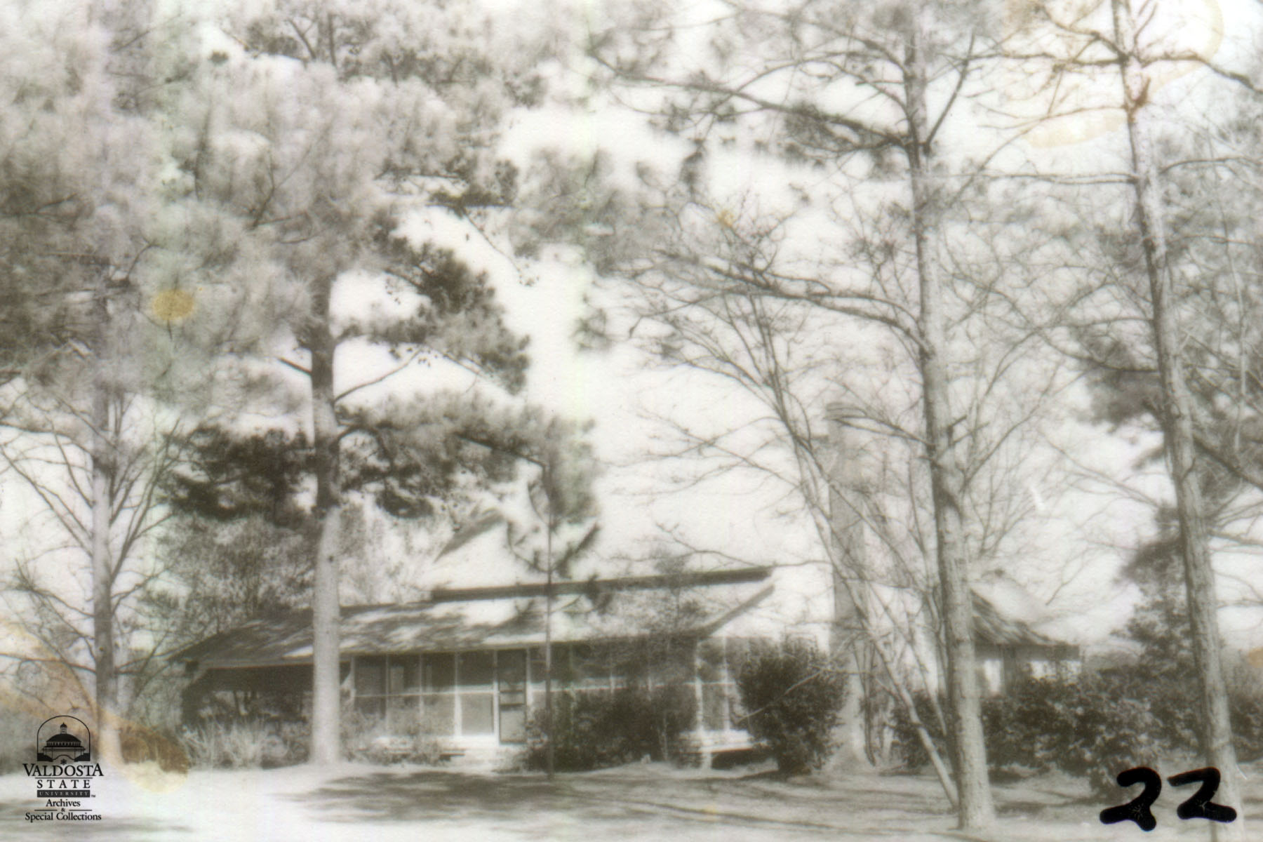 Georgia Architectural and Historic Properties Survey of Rural [114] Mid west section of the county, Quitman, Ga. December 1980. A one story rectangular plan with gabled tin roof and narrow siding. Shed porch with square posts (screened). Sash windows with 6/6 lights. Exterior chimney. Brick piers. Good condition. Date of Construction: c. 1910. A typical vernacular house common to this area.