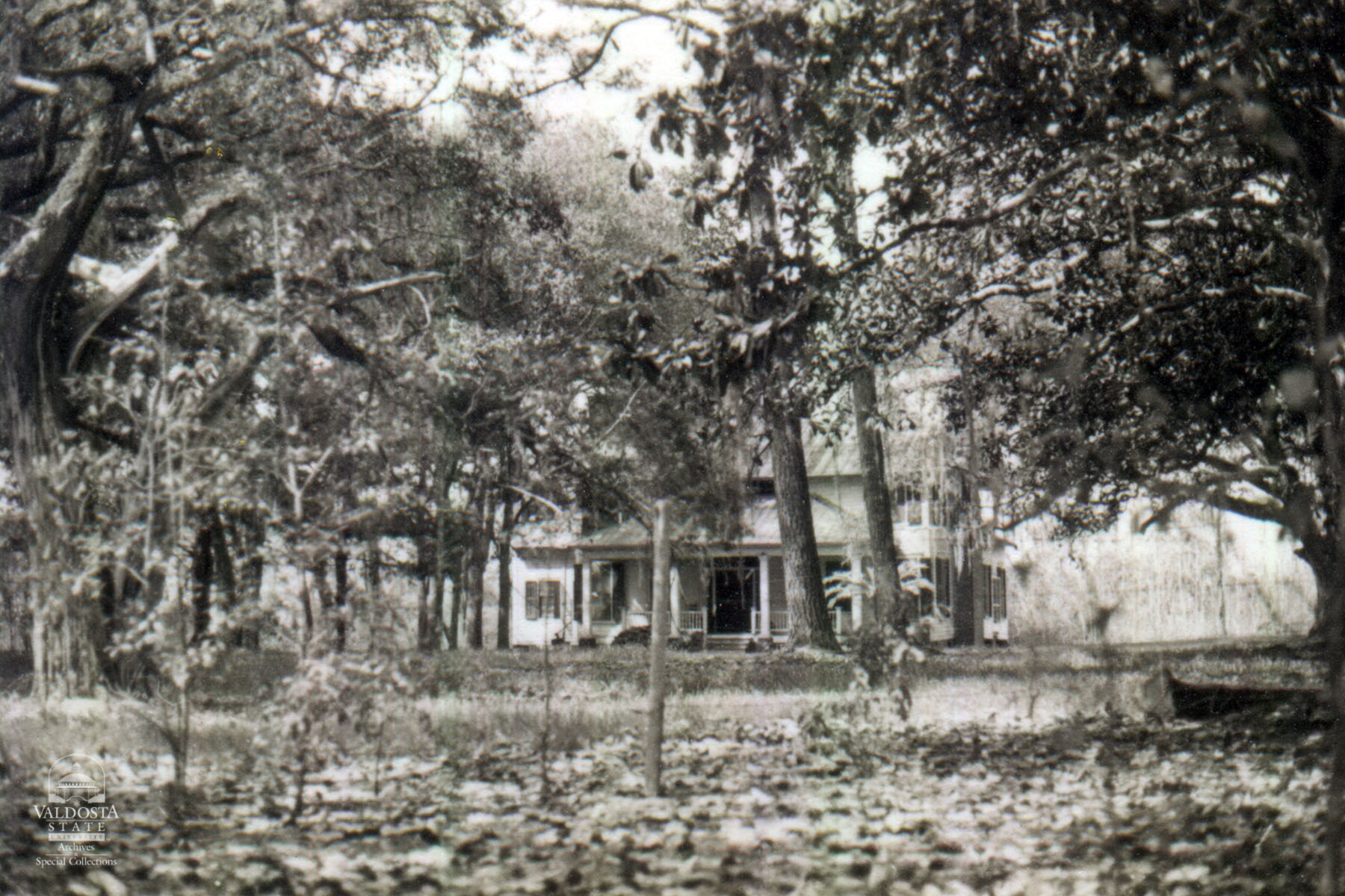 Georgia Architectural and Historic Properties Survey of Unknown [286] Southeast Brooks Co., Valdosta, Ga. December 1980. 2 story house with gabled, tin roof and hipped tin porch. Double hung sash windows with 6/9 lights and shutters. Exterior chimney. Shiplap siding. Transom and sidelights. Large oak and magnolia trees. Double front doors. (in process of renovation) Fair condition. Date of Construction: c. 1895. Plantation house very old & in good condition.