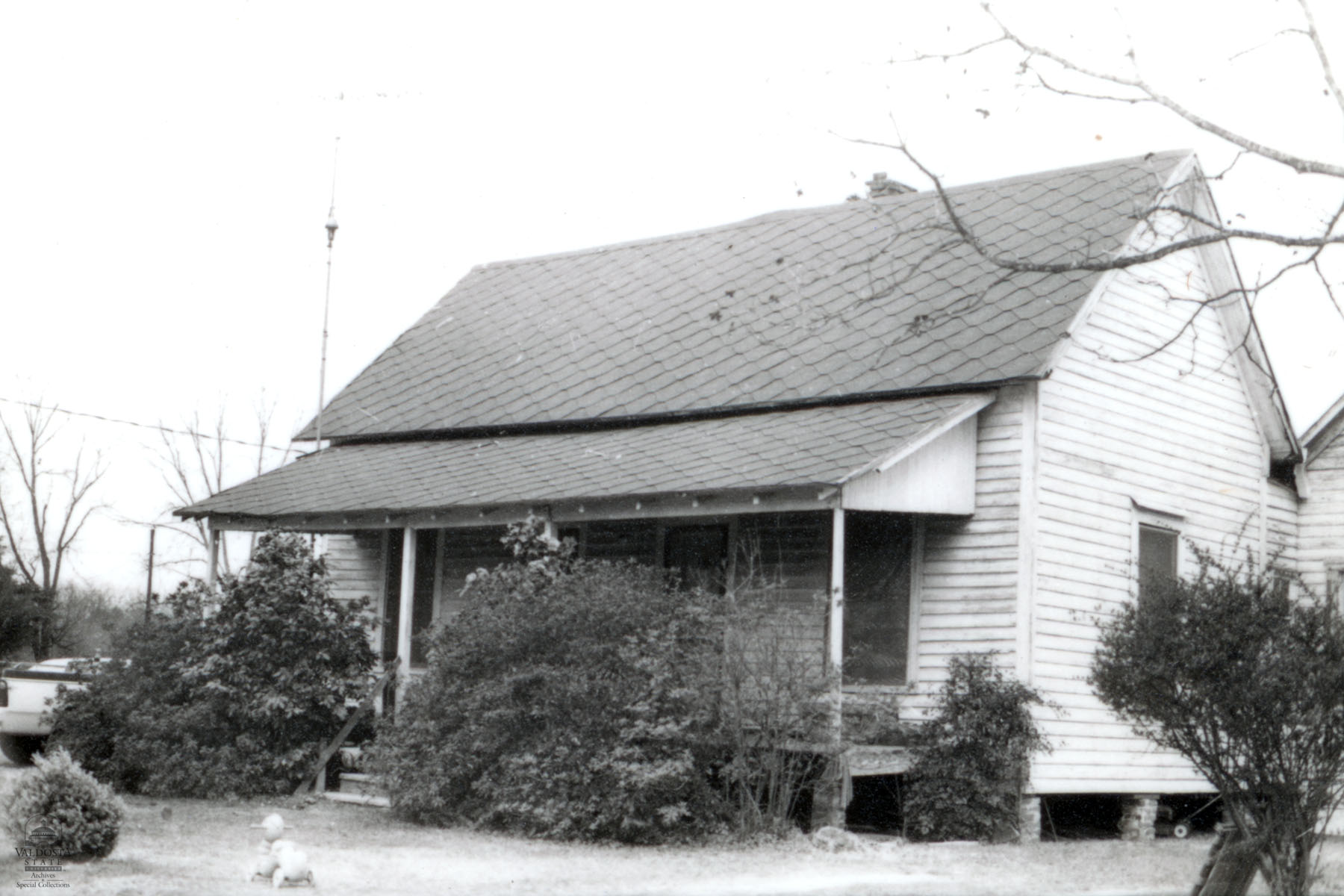 Georgia Architectural and Historic Properties Survey of Cherry St., Rebecca, Turner County, Ga., March 1981. 1 story saddlebag clapboard with gabled roof and exposed rafters. Interior chimney. Double hung sash windows with 6/6 lights. Square posts support shed porch. Set on brick piers. Date of Construction: c. 1905-1910. Not significant as part of a potential National Register historic district. Area of older structures not extensive enough.