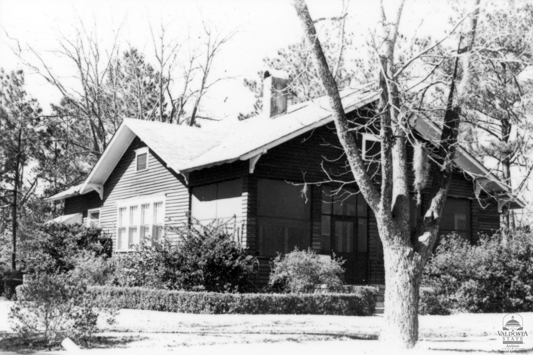 Georgia Architectural and Historic Properties Survey of 100 N. Quincy St., Quitman, Brooks County, Ga., 1981. Bungalow, irregular plan. Multi-gabled roof, exposed rafters and brackets. Gabled porch (screened), clapboard siding - green stain. Sash windows with 8/1 lights. Interior chimney. Transom over door. Good condition. Date of Construction: 1914. 1958 - porch enclosed for a room. This house is a very good example of Bungalows built during the 20's. The Harrell's were told that clay was dug from this lot in 1892 to make the brick to renovate the courthouse. Significant as part of a potential National Register district, along Screven St., and north of it, and including the commercial district.