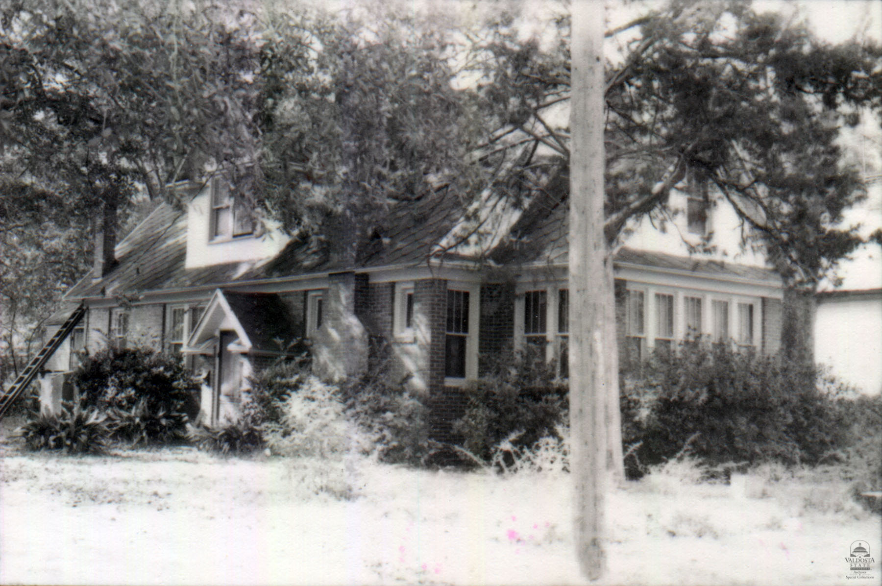 Georgia Architectural and Historic Properties Survey of 803 W. Magnolia St., Valdosta, Ga. One and a half story brick house with high gabled roof. Gabled dormer with double hung sash windows with 3/1 lights. Interior & exterior chimneys. Rectangular plan. Pediment over entrance. Double hung sash windows with 3/1 lights. Fair condition. Date of Construction: App. 1925. Has significance as part of a potential N.R. district.