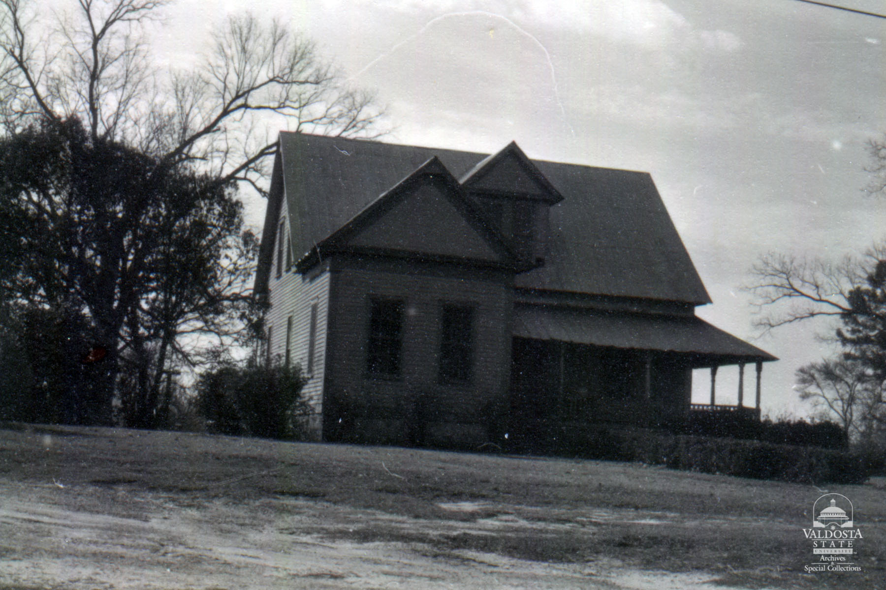 Georgia Architectural and Historic Properties Survey of Dixie [201] Ga. Highway 364, Quitman, Ga. December 1980. Once a dogtrot, now L-shaped with a gabled, tin roof. Surrounding shed porch with turned spindle posts and gingerbread trim. Gabled dormer with 2/2 lights. Sash windows with 6/6 lights. Transom and sidelights over door. Set on brick piers. Clapboard siding. Fair condition. Date of Construction: c. 1905. The town was originally a post office stop #17, and in February of 1879, the town was named Dixie. Not significant as part of a potential National Register historic district, Dixie does not have enough historic resources to form a district.