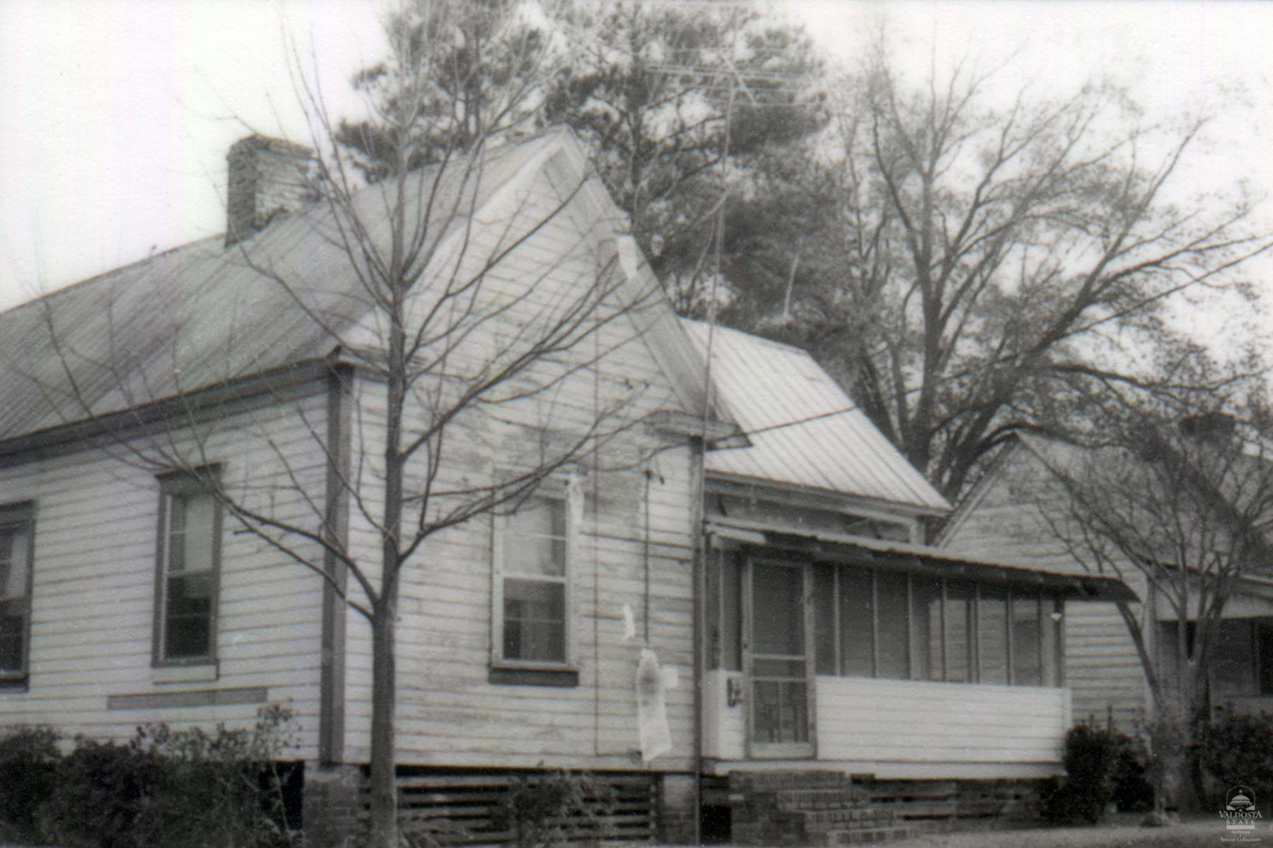 Georgia Architectural and Historic Properties Survey of 123 Pear Street, Valdosta, Ga., December 1980. 1 story L-shaped shiplap sided house with tin gabled roof. Shed porch. Interior chimney. Set on brick piers. Fair condition. Date of Construction: Prior to 1922. Typical functional house. Significant as part of a potential N.R. district.